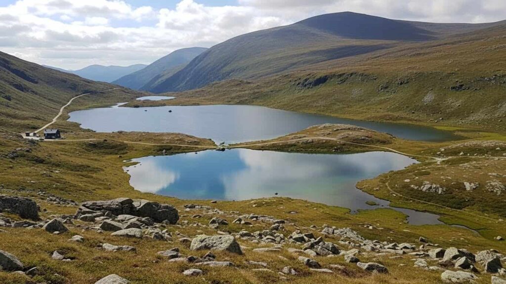 The lakes attract a variety of wildlife. You can often see ducks, swans, and herons, as well as small mammals like foxes and deer. Birdwatchers will enjoy spotting rare highland birds during migration seasons.